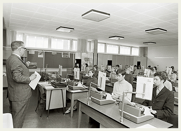 „Mit Luxusschuhen in die neue Schule“, so titelten im Dezember 1960 die Bremer Nachrichten, als die Handels- und Höhere Handelsschule in ihr neues Gebäude an die Grenzstraße/Ecke Hauffstraße in Walle einzog. Das Gebäude galt damals als eines der „drei schönsten Großbauten im Bremer Westen“. Schüler und Lehrer jedenfalls waren froh, dass die bisherige räumliche Enge der ständig wachsenden Schule gemildert wurde.
