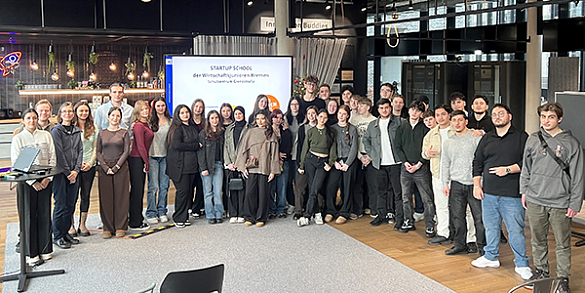 Am 17. und 18.12.2025 besuchte die Q1 des Gymnasiums den CampusSpace der Sparkasse an der Universität Bremen. Dort wurden die Schülerinnen und Schüler durch die Wirtschaftsjunioren bei der Findung und Entwicklung einer Geschäftsidee für den Gründerpreis für Schülerinnen und Schüler unterstützt. Die Wirtschaftsjunioren sind junge Bremer Unternehmer und Unternehmerinnen, die sich ehrenamtlich für unterschiedliche Projekte – wie zum Beispiel den Gründerpreis – einsetzen. Das Schulzentrum Grenzstraße nimmt regelmäßig erfolgreich am Deutschen Gründerpreis für Schülerinnen und Schüler teil. Beim Gründerpreis entwickeln die Lernenden fiktiv eine eigene Geschäftsidee mit allem, was dazugehört.
